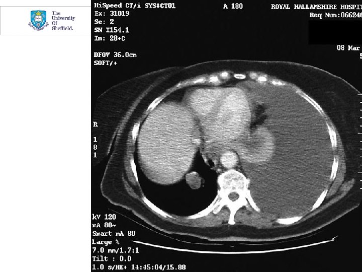 Case 3 Mrs. PD • 66 y. o referred from X-ray • 1/12 SOBOE, now SOB on dressing • Cough 2/52, dry • PMH Throat Cancer Rx Surgery and Radiotherapy 2004 -5, Ex-smoker • o/e L side of chest Dull PN, BS