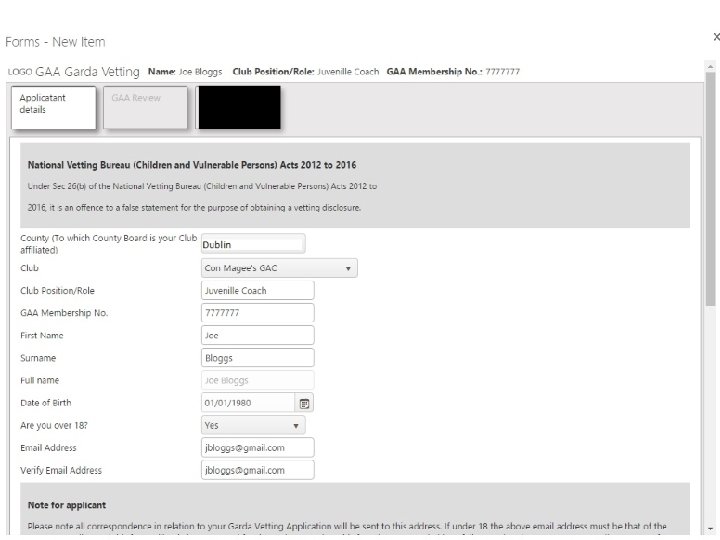 Information required for an Invitation There are 9 key pieces of information subject must provide before an invitation can be issued: • • • Proof of identity Proof of current address County (what County Board is your Club affiliated) Subjects club Subjects name Subjects date of birth Subjects email Subjects contact number The role the subject is being vetted for