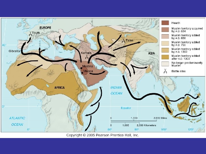 Diffusion of Islam diffused rapidly and widely from its area of origin in Arabia. It eventually stretched from southeast Asia to West Africa.