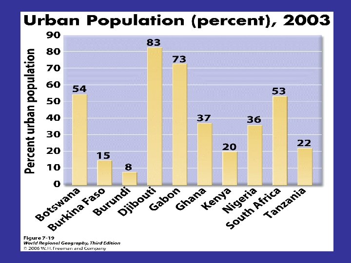 Problems of Urbanization • Problems in foreign countries – Primate Cities: a large city 2 ce as large as the next largest city, usually with a large proportion of the national city population, e. g. Mexico City, Lagos (Nigeria), Bangkok (Thailand), Paris (France), London (England), etc. – Cities usually become ‘primate’ (large) because too much attention is given to that particular city at the expense of others. Therefore it grows at the expense of other towns, and ends up drawing more immigrants from the countryside who are looking for work. This then leads to problems shown on next slide, especially in developing countries.