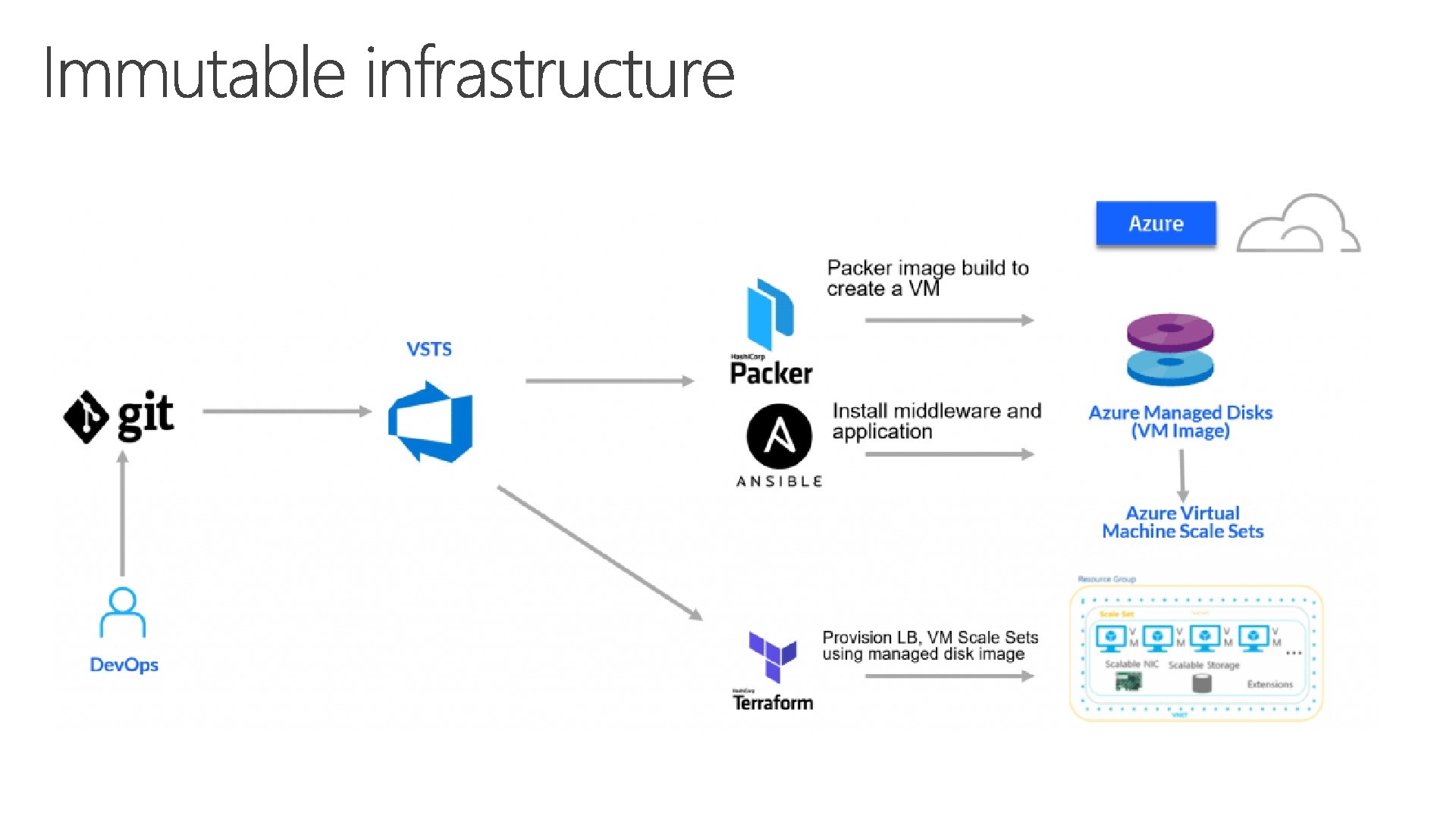Immutable infrastructure is comprised of immutable components that are replaced for every deployment, rather than being updated in-place. Those components are started from a common image that is built once per deployment and can be tested and validated #Dev. Sum 19