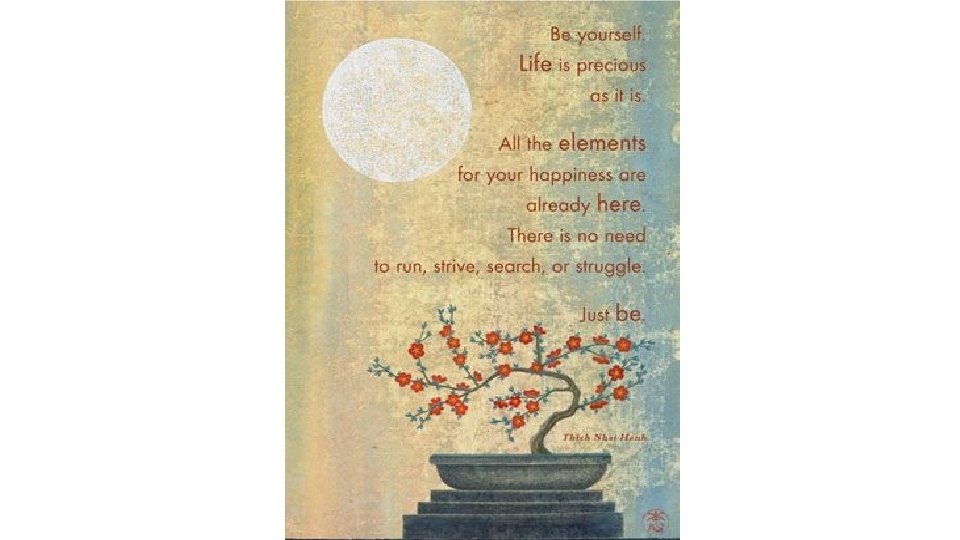 Mindfulness is NOT: • having a blank mind • becoming emotionless • withdrawing from life • seeking bliss Mindfulness increases our • escaping pain capacity to bear our experiences