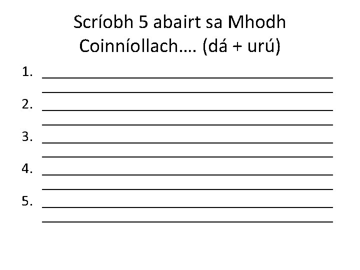 An Modh Coinníollach Conditional Tense Gaelcholáiste na Cloiche Léithe