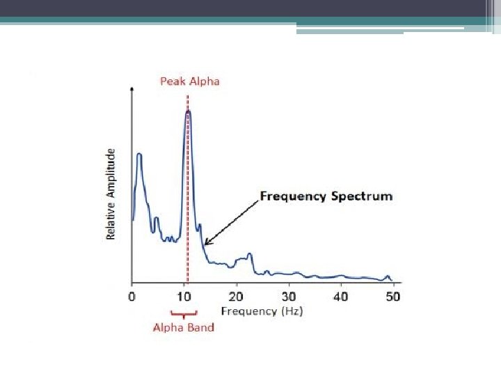 Alpha Peak Frequency • Alpha peak and r. CBF: A direct relationship between regional CBF and i. APF has been established, where increased i. APF was associated with increased r. CBF, most specifically in the bilateral inferior frontal gyrus (BA 45) and right insular cortex (BA 13). • Alpha peak and cerebral perfusion: A direct relationship between i. APF and cerebral perfusion on one hand their relationship to the modulation of attention and arousal on the other hand, which are also impaired in both ADHD and depression. • Alpha peak and medication : Given that benzodiazepines have been shown to decrease the i. APF (specifically Carbamazepine, and oxcarbazepine), these studies suggest interplay between the GABAergic system and cerebral blood-flow.