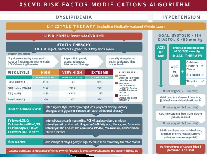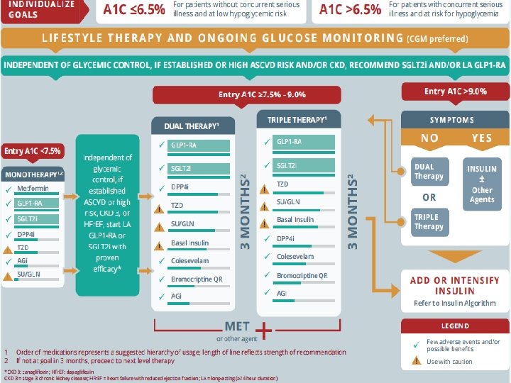 Individualisation of Hb. A 1 C � In adults with recent T 2 D onset and no clinically significant ASCVD, an A 1 C ≤ 6. 5% if achieved without substantial hypoglycemia or other unacceptable consequences, may reduce the lifetime risk of micro- and macrovascular complications. � A broader A 1 C range is suitable for older patients and those at risk for hypoglycemia.