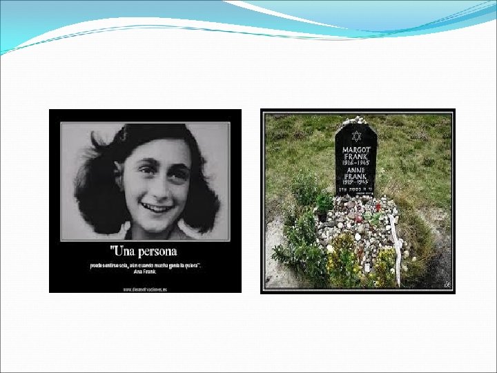 • Fue la segunda hija de Otto Heinrich Frank Edith Hollander. • Tenía una hermana mayor, Margot Frank. • Tuvo que mudarse a Ámsterdam, huyendo de los nazis. • Le regalaron un diario al cumplir los doce años. • Muy poco después, su familia tuvo que ocultarse en un escondrijo situada en un viejo edificio en el Prinsengracht con ocho personas más. • Ana escribió su Diario, en el que describía su miedo a vivir escondida durante años, sus nacientes sentimientos por Peter, los conflictos con sus padres, y su vocación de escritora. • Un informador holandés guio a la Gestapo a su escondite. Fueron arrestados y llevados al campo de concentración de Auschwitz.