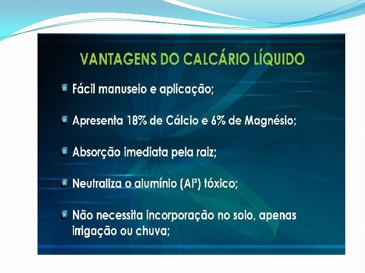 CALCITEC CORRETIVO üCorrige Al, üEquilibra a CTC, üMelhora o p. H do solo, üAumenta a saturação por base (V %).