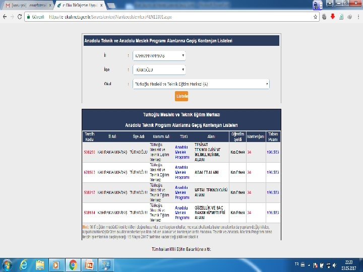 KONTENJAN BELİRLEME İŞLEMLERİ Mesleki ve Teknik ortaöğretim kurumlarında Bakanlıkça ATP ve AMP’nin 10. sınıf seviyesinde meslek alanlarına alınacak öğrenci sayıları sektörün ihtiyacı, çalışma ve kapasite durumu, okulun fiziki şartları, öğretmen sayısı ve 9. sınıf öğrenci sayıları dikkate alınarak belirlenecektir. e-Okul Sisteminde meslek alanlarına, ATP’de her alan için en az bir şube, AMP’de ise 9. sınıf öğrenci sayısından az olmamak üzere her alan için en az 10 öğrencilik kontenjan tanımlanacaktır.