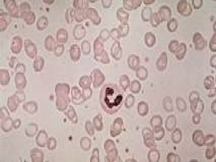 MACROYTIC ANAEMIA -Folate deficiency is less common. - suggested by an increased MCV , WBC with altered morphology hypersegmented nutrophilis , poikilocytosis, ansiocytosis. appear after 7 weeks of deficiency.
