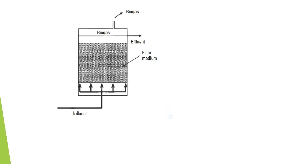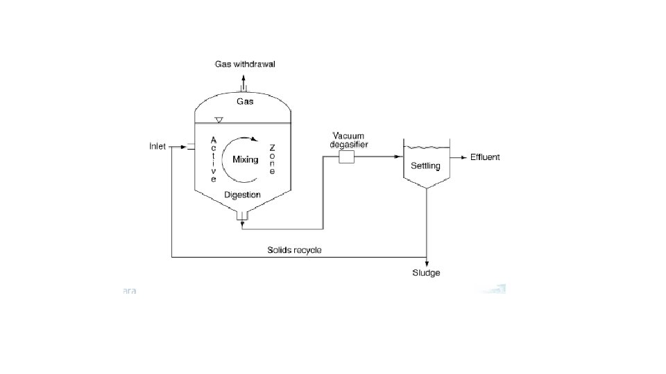 The Anaerobic Contact Process (ACP) High biomass concentration, greater efficiency and smaller reactor size is the idea of ACP. Settling of anaerobic sludge in a settling tank and its return back to the reactor allows further contact between biomass and raw waste. Major drawback is poor sludge settlement arose from gas formation by anaerobic bacteria in settling tank. Gas formation problem can be minimized by employing vacuum degasification.