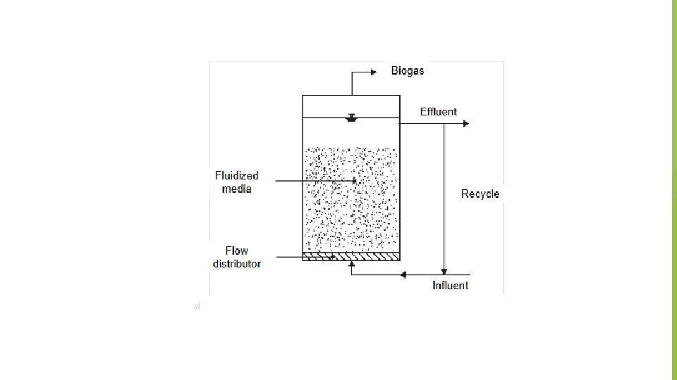 Anaerobic Expanded and Fluidized Bed Reactors (EGSB and FB) Expanded bed and fluidized bed systems are regarded as the second generation of sludge bed reactors achieving extreme organic loading rates. FB is a biological reactor that accumulates a maximum active attached biomass yet still handling fine suspended solids without blocking. By maximizing the surface area available for microbial attachment and minimizing the volume occupied by the media, a maximum specific activity of attached biomass may be achieved for a given reactor volume. A filter containing extremely small particles (0. 5 mm) provides adequate surface area to achieve these benefits. Rate of liquid flow and the resulting degree of bed expansion determines whether the reactor is termed a fluidized bed or expanded bed system.