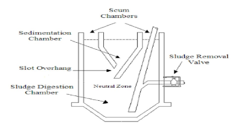 Adequate mixing is provided by an even flow-distribution combined with a sufficiently high upflow velocity, and by agitation that results from gas production. Biomass is retained as a blanket or granular matrix, and is kept in suspension by controlling the upflow velocity. Wastewater flows upwards through a sludge blanket located in lower part of reactor, while upper part contains a three phase (solid, liquid, gas) separation system. Three-phase separation device is the most characteristic feature of UASB reactor. It facilitates the collection of biogas and also provides internal recycling of sludge by disengaging adherent biogas bubbles from rising sludge particles.