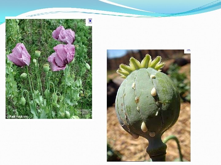 OPIOID ANALGESICS SOURCE Opium is obtained from the opium poppy by incision of the seed pod after the petals of the flower have dropped. The white latex that oozes out turns brown and hardens on standing. This sticky brown gum is opium. It contains about 20 alkaloids, including morphine, codeine etc. The principal alkaloid in opium is morphine, present in a concentration of about 10%.