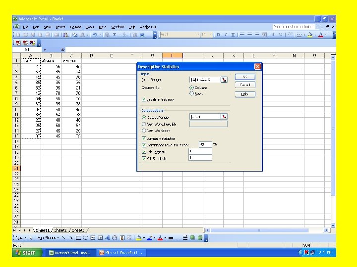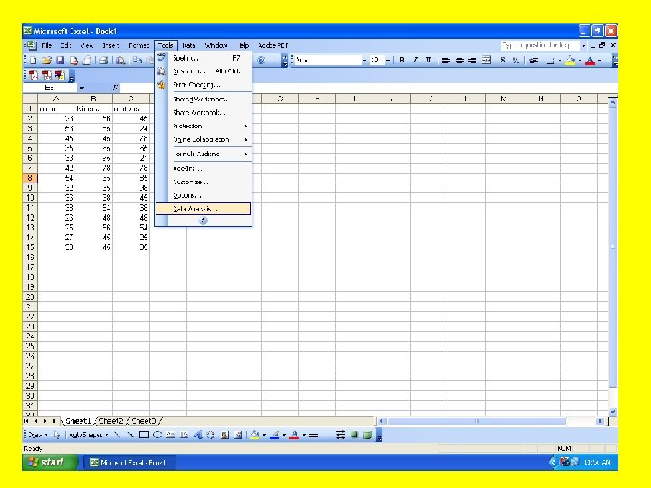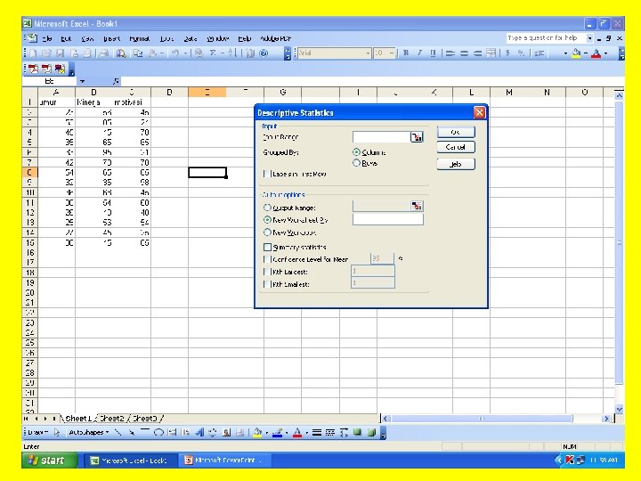 Tujuan Instruksional Khusus • Mahasiswa mengetahui fungsi dari komponen perangkat lunak Excel • Mahasiswa mengetahui proses entry data pada perangkat lunak excel • Mahasiswa mampu melakukan proses analisis data Deskriptif, komparatif (Satu sample, dua sample dan lebih dari dua sample) serta asosiatif dengan excel