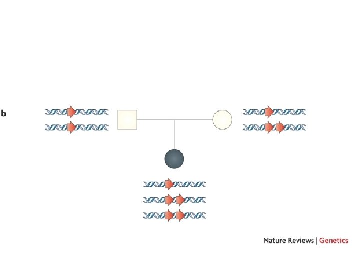 Imprinting • Nelle cellule germinali primordiali l’imprinting viene cancellato del tutto e il DNA è demetilato • Successivamente nella linea germinale maschile si determina un pattern di imprinting che in alcuni loci è complementare a quello della linea germinale femminile • I cromosomi su cui avviene l’imprinting (7, 11, 15) manterranno questo pattern e lo riprodurranno ad ogni mitosi • Si potranno sempre distinguere l’espressione genica del cromosoma materno e paterno