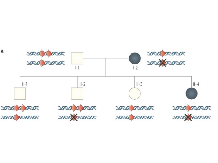 Malattie autosomiche dominanti causate da delezioni basi biochimiche delle delezioni dominanti 1. il livello dimezzato di prodotto genico è insufficiente a mantenere il fenotipo 2. il difetto eterozigote diviene omozigote a livello delle cellule dei tessuti periferici (LOH) 3. Un solo allele è espresso per imprinting dell’altro