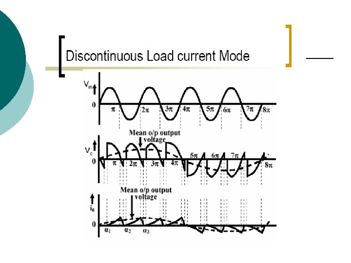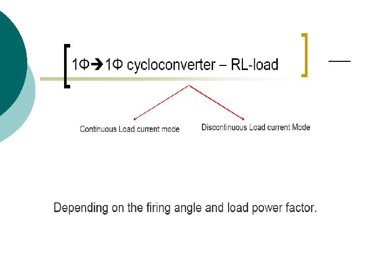 Phase-Controlled Cycloconverters (cont’d) The Fourier series of the line current is given by: where i 0 is the load current and is the supply frequency. The current wave has a dc component and a fundamental component with a lagging phase angle, P.