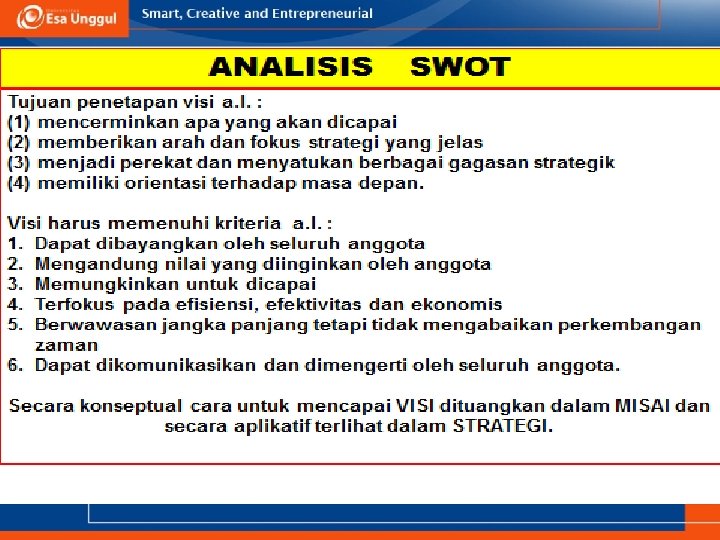 VISI DAN MISI UNIVERSITAS ESA UNGGUL