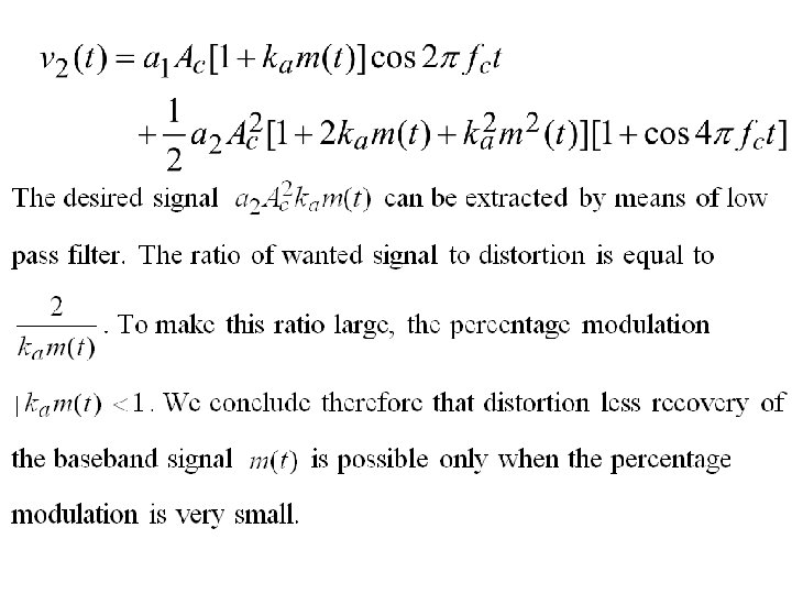 . Square-Law Modulator … The output of the non-linear device (diode) where The first term is the desired AM wave with amplitude sensitivity Remaining unwanted three terms are removed by appropriate filtering.