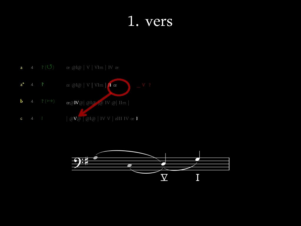1. vers a 4 a* 4 ? (↺) œ @I@ | VIm | IV œ ? b 4 ? (↣) œ @I@ | VIm | II œ D IIl. V œ@IV@| @I@ |@ IV @| IIm | c 4 ! | @V@ | @I@ | IV V | z. III IV œ I