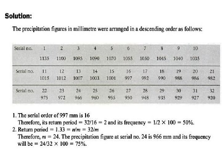 Frequency: Probability expressed in terms of percentage Frequency = p * 100 Frequency of a rainfall of a given magnitude = the number of times the given event may be expected to be equaled or exceeded in 100 years If a storm of a specified duration and depth has a 1% frequency in any one year, it has an exceedance probability of 0. 01 and a return period of 100 years