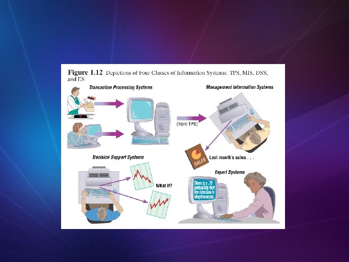 Types of Information Systems and Systems Development Transaction Processing Systems (TPS) Automate handling of data about business activities (transactions) Management Information Systems (MIS) Converts raw data from transaction processing system into meaningful form Decision Support Systems (DSS) Designed to help decision makers Provides interactive environment for decision making