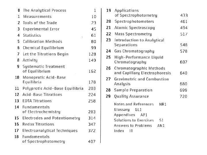 Literature: Quantitative Chemical Analysis (6 th ed. , 2003) by Daniel C. Harris Fundamentals of Analytical Chemistry by Skoog and West Exploring Chemical Analysis (2 nd ed. , 2001) by Daniel C. Harris Statistics for Analytical Chemistry by Miller and Miller Credits: 2 (+1: experiment) Class hours: 8: 10 -10: 00 pm, Friday Grading: Homework, 30%; Midterm exam, 30%; Final exam, 30%; Class participation, 10%.