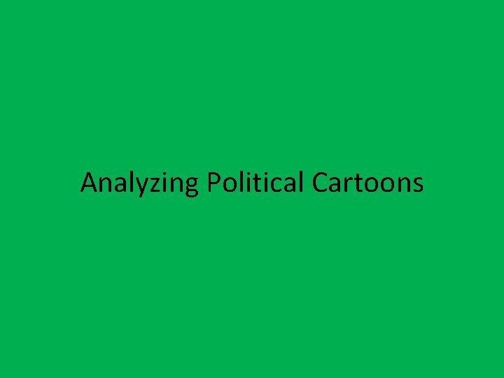 Cartoon Analysis Guide • Symbolism – Cartoonists use simple objects to stand for larger concepts. • Exaggeration – Cartoonists may overdo physical characteristics of people or things in order to make a point. • Labeling – Cartoonists often label objects or people to make it clear what they stand for. • Analogy – Comparison between two unlike things that share the same characteristics. • Irony – The difference between the ways things are and the way they should be. – Cartoonists use irony to express their opinion on an issue.