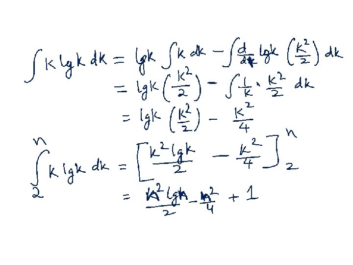 Tightly Bounding The Key Summation The summation bound so far The lg k in the first term is What are we doing here? bounded by lg n/2 = lg n we - 1 doing here? What are Move (lg n - 1) outside the What are we doing here? summation