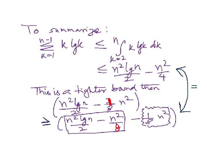 Tightly Bounding The Key Summation Split the summation for a What are we doing here? tighter bound The lg k in the second term What are we doing here? is bounded by lg n Move the lg n outside the What are we doing here? summation