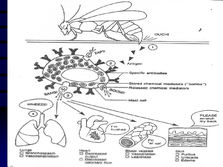Pathogenesis of Anaphylaxis • Ig. E-mediated (Type I hypersensitivity) • Sensitization stage • Subsequent anaphylactic response
