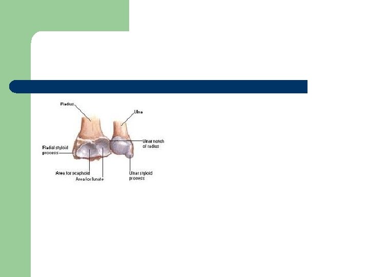 Art. radiocarpalis l l Art. ellipsoidea tipi eklemdir. Radius’un distal ucu ile os scaphoideum, os lunatum ve os triquetrum arasındadır. Hem discus articularis’i hem de meniscus’u olan tek eklemdir. .