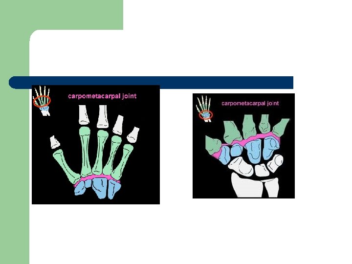 Artt. carpometacarpales l Karpal kemiklerle metakarpal kemikler arasında kurulu eklemlerdir. Art. carpometacarpalis pollicis; art. sellaris, diğerleri art. plana tipidir.