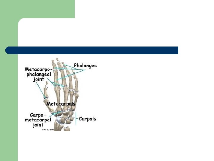 l Bu eklemde el; fleksiyon-ekstensiyon, abduksiyon (radial deviasyon)-adduksiyon (ulnar deviasyon) ve sirkumdüksiyon yaptırılır. Rotasyon mümkün değildir