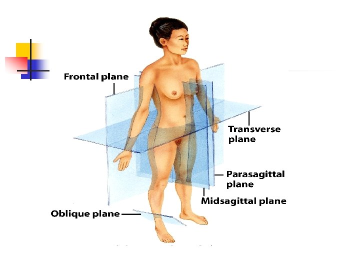 ANATOMÍA TOPOGRÁFICA TERMINOS DE ORIENTACION EN EL ESPACIO Ø Ejes o sentidos corporales A. Vertical B. Horizontal C. Frontal Ø Direcciones corporales a. Craneal o hacia arriba b. Caudal o hacia abajo c. Lateral o hacia fuera d. Medial o hacia adentro e. Proximal o cercana f. Distal o lejana.