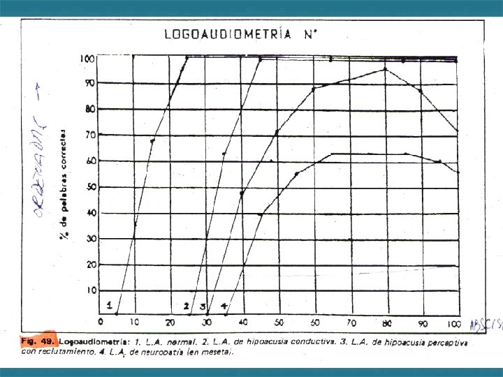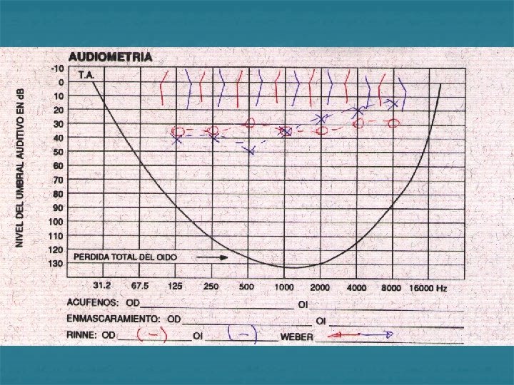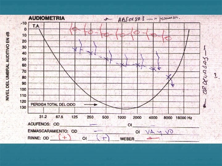 n Logoaudiometría o Audiometría vocal: Se realiza en cabinas audiométricas (cámaras sono-amortiguadas) n Se pasan listas y el porcentaje da el grado de inteligibilidad n Hipoacusía conductivas, cortipatías y neuropatías