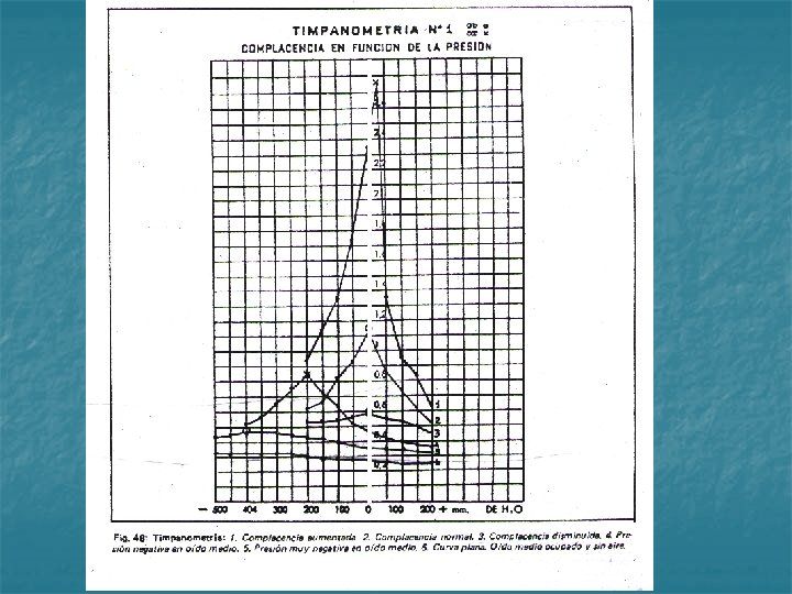 n Impedanciometría: Se interpreta como la resistencia que pone el oído medio al paso de la onda sonora 1. Medición del reflejo estapediano 2. Medición de la complacencia de la MT 3. Medición de la presión del oído medio