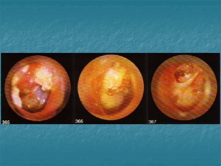 Otorrea + hipoacusia factores predisponentes: diabetes, hipotiroidismo, hábitos nutricionales y defensas bajas. Otoscopía: Perforaciones marginales, pólipos en caja.