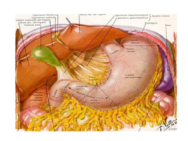 • Ligamentos • • • L. Coronario. L. Triangular D e I. L. Falciforme. L. Redondo. L. Venoso.