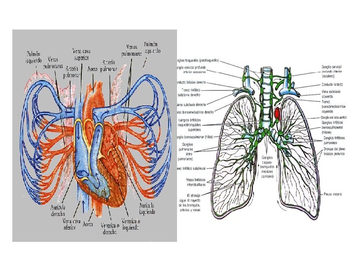 • Pulmón derecho: • Es mas grande que el izq, es 2. 5 cm mas corto por el diafragma que es más elevado de ese lado para dar espacio al hígado tiene 3 lóbulos • Pulmón izquierdo: • Es mas pequeño, mas estrecho y mas largo que el derecho, tiene 2 lóbulos