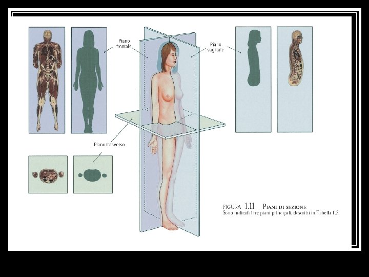 I piani di sezione e visualizzazione: - Frontale - Sagittale - Trasverso Sono importanti in Anatomia radiologica ed in Anatomia topografica