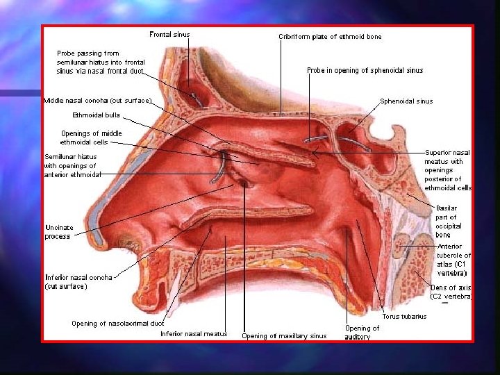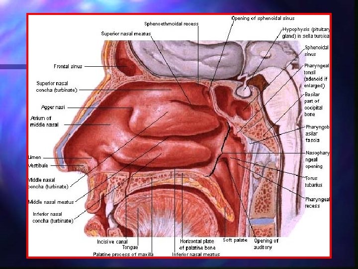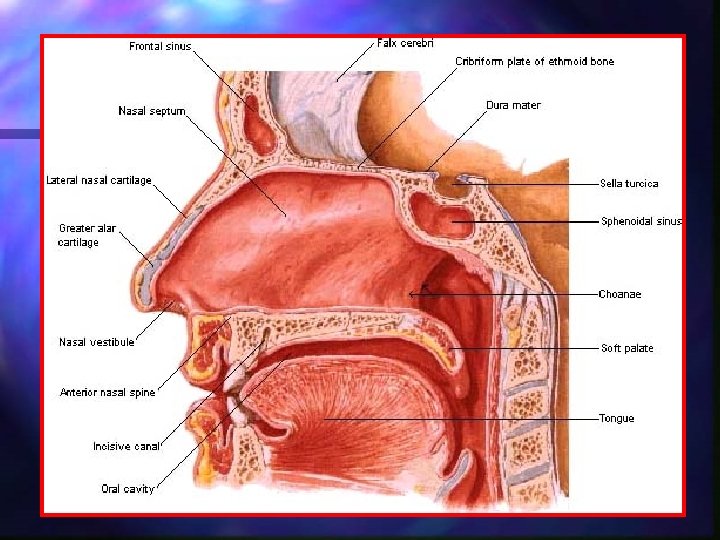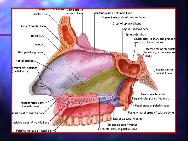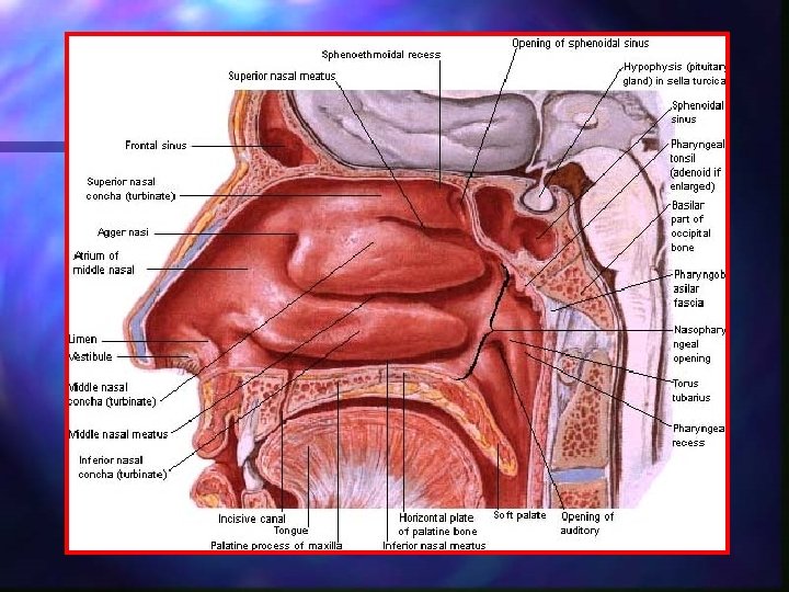Anatomie clinică - rinite - corpi străini - tumori - vegetaţii adenoide - sinuzite n Subdiviziuni n Ø Ø Vestibulul nazal Fosa nazală propriu-zisă - zona respiratorie - zona olfactivă