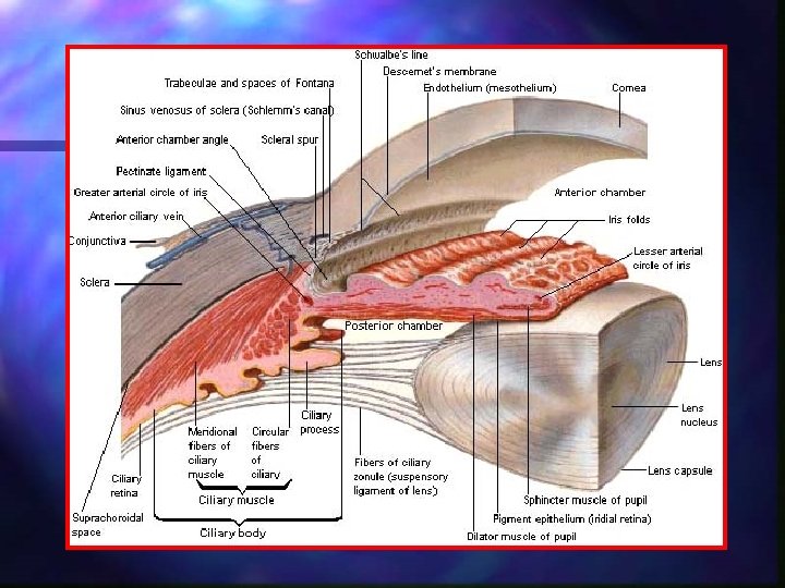 Inervaţia n. ciliari lungi – n. oftalmic n. ciliari scurţi – gg. oftalmic (eferenţe) Clinic şi topografic Segment ANT – cristalinul - zonula ciliară + structurile UŞOR ABORDABIL ŞI EXPLORABIL Segment POST – sclera - coroida - p. optică a retinei - corpul vitros - profund - explorabil doar prin metode speciale - dificil de abordat