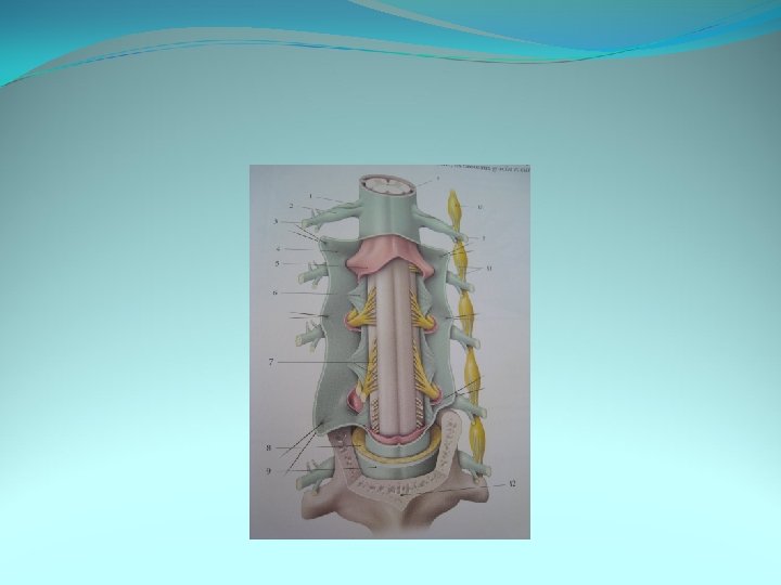 La moelle épinière Un cordon antérieur dans l’intervalle entre le sillon antérieur et les racines nerveuses antérieures émergentes. Un cordon latéral entre les racines antérieure et postérieure Un cordon postérieur entre la racine postérieure et le septum médian postérieur