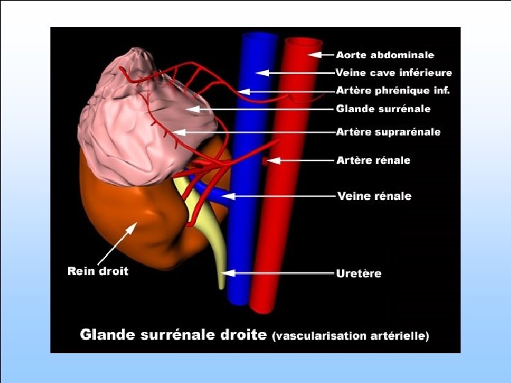 Anatomie externe • 2 glandes, situées chacune sur le pôle supérieur d’un rein • Forme aplatie • Environ 4, 5 cm de longueur et 3 cm de largeur, environ 6 g • Entourées d’une capsule fibreuse à forte vascularisation capillaire • Importante vascularisation périphérique