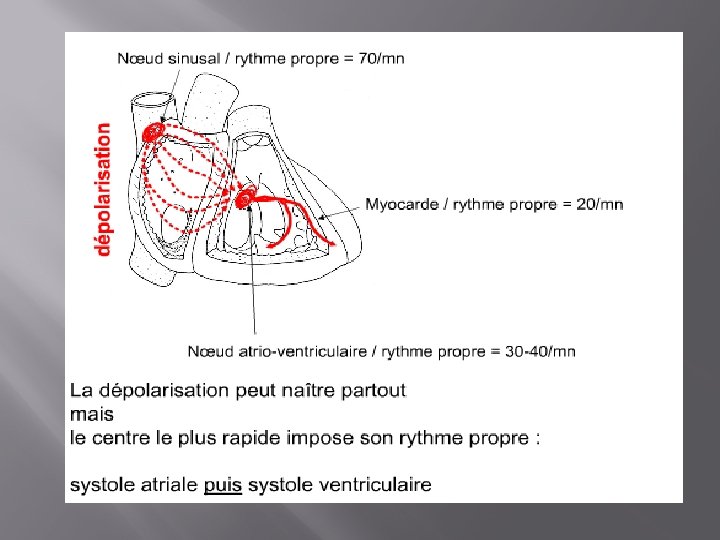 Nœud sinusal : découvert par Keit et Flack situé dans l’OD prés de l’abouchement de la VCS Nœud atrioventriculaire : découvert par Ashoff et Tawara