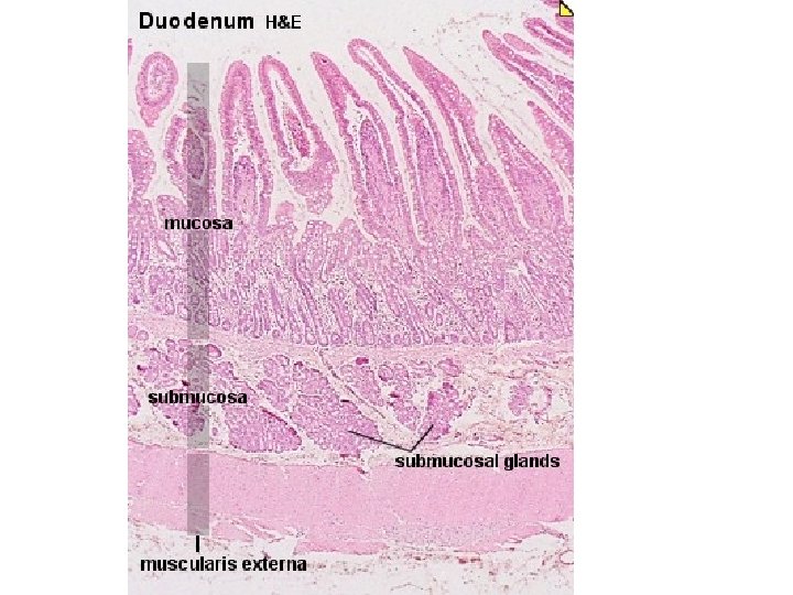 Histology of the small intestine key points – The outermost layer of the intestine, the serosa, is a smooth membrane consisting of a thin layer of cells that secrete serous fluid, and a thin layer of connective tissue. – The muscularis is a region of muscle adjacent to the submucosa membrane. It is responsible for peristalsis movement. It usually has two distinct layers of smooth muscle: circular and longitudinal. – The submucosa is the layer of Dense Irregular CT or loose CT that supports the mucosa – The mucosa is the innermost tissue layer of the small intestines and is a mucous membrane that secretes digestive enzymes and hormones. The intestinal villi are part of the mucosa. – The three sections of the small intestine look similar to each other at a microscopic level, but there are some important differences. The jejunum and ileum do not have Brunner's glands in the submucosa, while the ileum has Peyer's patches in the mucosa, but the duodenum and jejunum do not. •