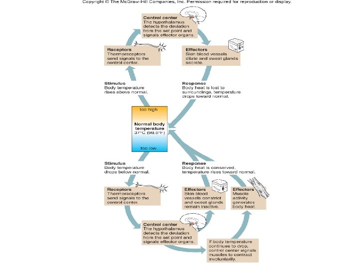 Maintenance of Life Control center (set point) Receptors Stimulus (Change occurs in internal environment. ) (Change is compared to the set point. ) Effectors (muscles or glands) Response (Change is corrected. )