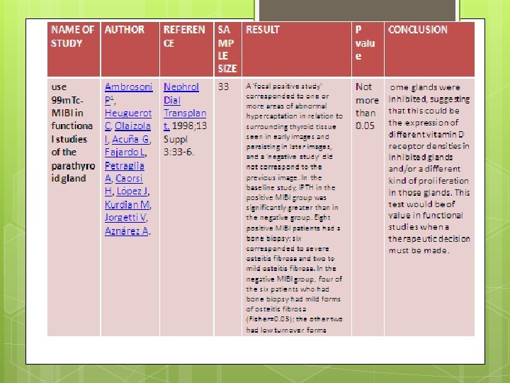 TERTIARY HYPERPARATHYROIDISM Long standing renal failure s/p renal transplant autonomous parathyroid gland function. Can cause problems similar to primary hyperparathyroidism Operative intervention symptomatic disease autonomous PTH secretion persists for more than 1 year after a successful transplant subtotal or total parathyroidectomy with autotransplantation