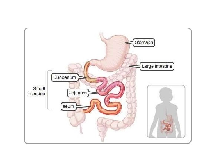 • Peristalsis is also at work in this organ, moving food through and mixing it up with digestive secretions. • The duodenum is largely responsible for continuing the process of breaking down food, with the jejunum and ileum being mainly responsible for the absorption of nutrients into the bloodstream. • pancreas secretes enzymes into the small intestine. • These enzymes break down protein, fat, and carbohydrates from the food we eat.